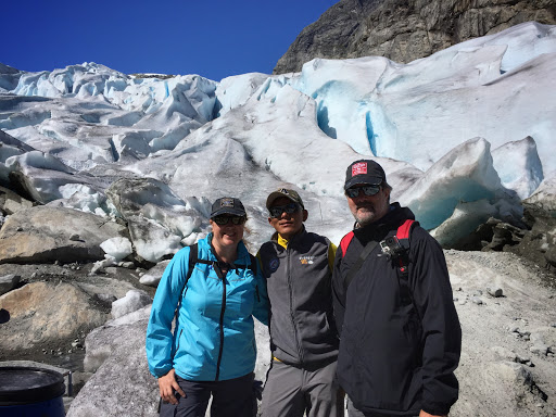 Recordareis que hace unos días me caí por la escalera del hotelucho aquél. Hoy pondremos a prueba mi pie y su dedo morado.... Nos vamos a subir por un glaciar.